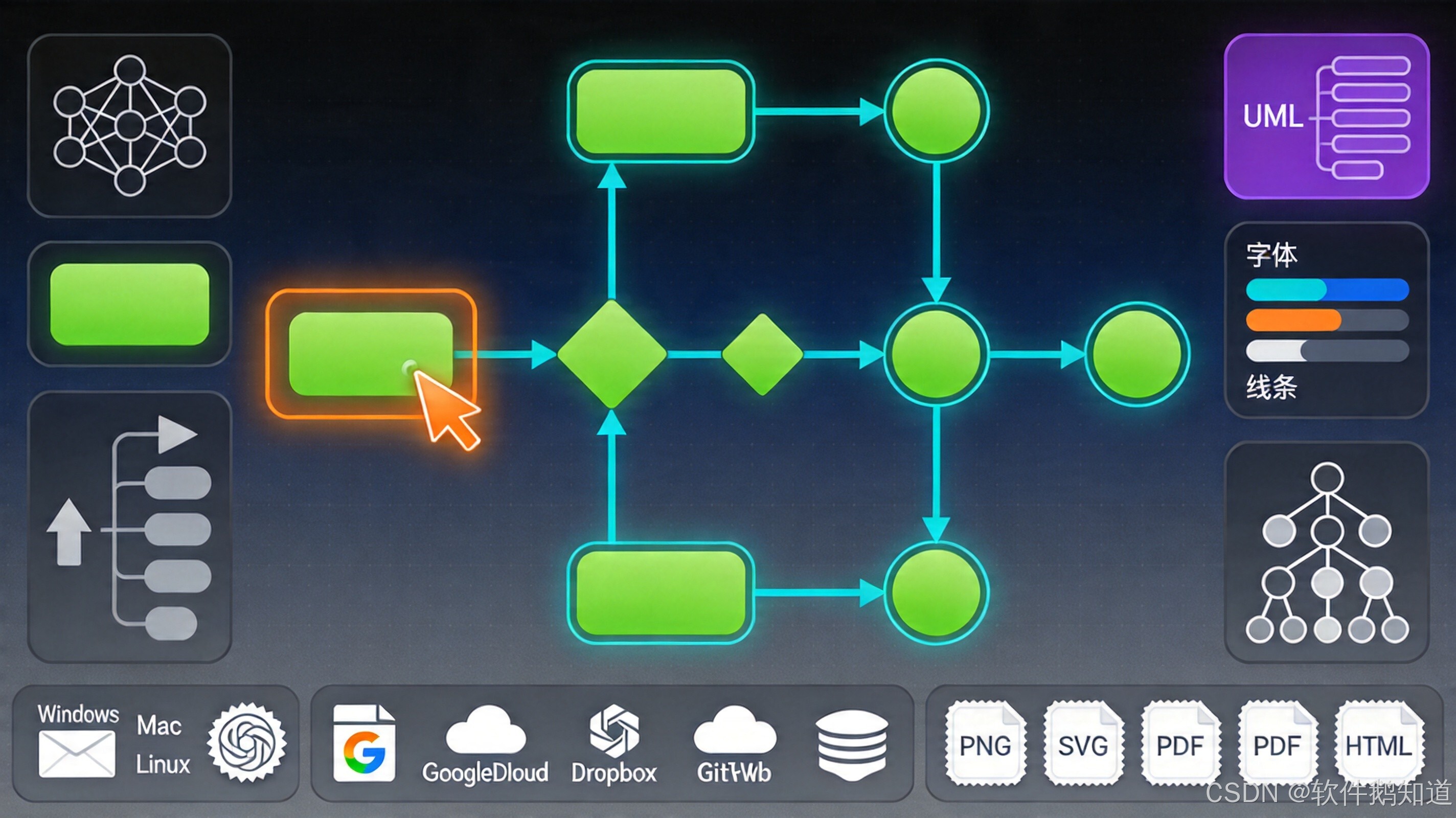 It supports flowcharts, UML, network topology diagrams, org charts, and system architecture diagrams. That makes it a practical unified diagramming tool for development design reviews, system documentation, and operations topology records. For individuals and small teams, the learning curve is much lower than with heavyweight desktop software.