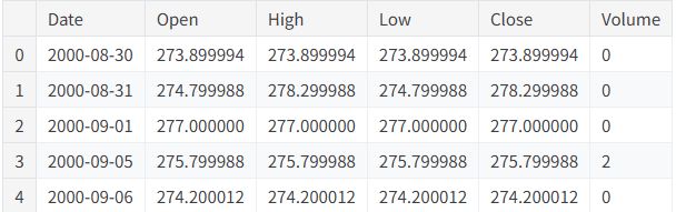 df.columns = ["Date", "Open", "High", "Low", "Close", "Volume"]